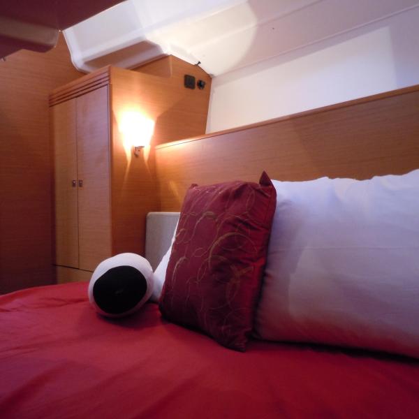 Below deck, she provides a sensible and fully functional layout with standing headroom throughout, a large aft cabin and a roomy forward cabin. The salon, with its bright, vibrant interior, plenty of storage and fold-down table with built-in wine storage can also accommodate berthing for two people.