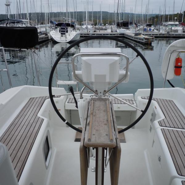 Pavati, a Sun Odyssey 33i, is a sailboat with unmatched sailing qualities. As the breeze freshens you will notice she sails perfectly, taking little effort at the helm and with all lines led aft, she is simple to manage, too.