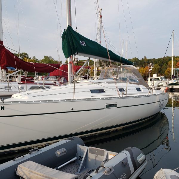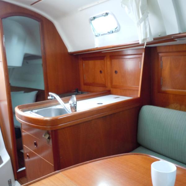 Pearl, a Beneteau 311, combines the amenities of a large cruiser with the easy handling performance of a 30-footer. It features private cabins forward and aft, a full galley with plenty of storage, and a generous main salon with centerline table.