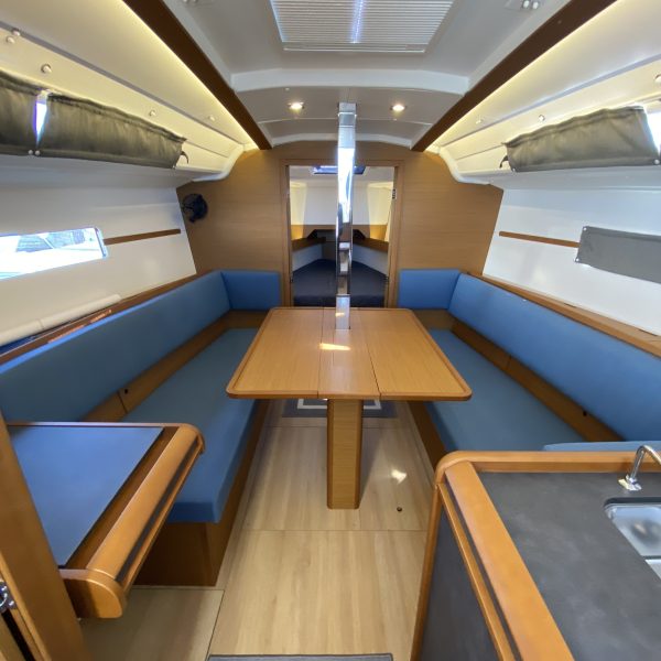 From the very first glance, this limited-edition Sun Odyssey 349 captivates with her sleek grey hull and inviting cockpit, generous interior volume, and pure lines. Designed by Marc Lombard, she remains true to the values of the Sun Odyssey line, the 349 is the perfect combination of performance, comfort, and safety at sea. Whether at anchorage or at sea, in the cockpit or at the helm, you’re sure to enjoy taking full advantage of this stable, seaworthy and easy-to-handle boat. With two helm stations, access to the drop-down swim platform is quick and easy.