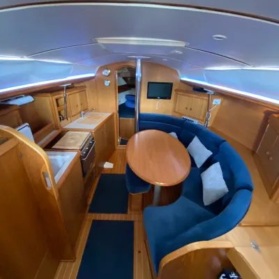 Sapphire is a well-cared for and thoughtfully equipped 1999 Jeanneau Sun Odyssey 34.2. The Sun Odyssey 34.2 represents Jeanneau’s long history of cruising sailboat construction. Fast and well equipped given a sleek and balanced hull section as well as a strong comfortable deck, 2 cabins along with all the amenities for distance cruising. Sapphire’s generous cockpit is laid out to organize sail handling around a protected companionway.