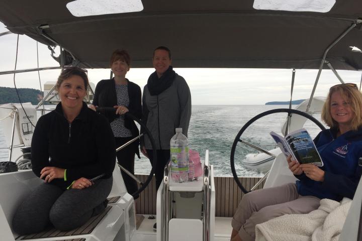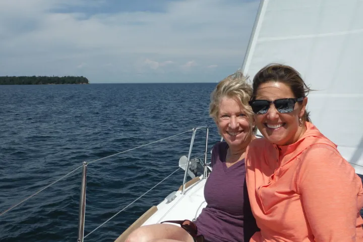 A girls getaway to unplug, unwind and explore the Apostle Islands. This girls-only trip focuses on the basics of sailing and becoming a confident crew member. There will be plenty of time for exploring the islands and for spending time with friends during the weekend as well. Complimentary sleep-aboard the night before your first sailing day. Sail away from the marina on your first day, anchor among the islands and head back to the mainland on the second day. Ask us how you can extend your stay and enjoy Bayfield’s shops and restaurants. Sailing is a physical activity that people of all ages can participate in and appreciate, but being physically fit will increase sailing performance and safety. These trips are hands-on activities that require complete, unaided mobility getting on and off docks, boats, and dinghies.